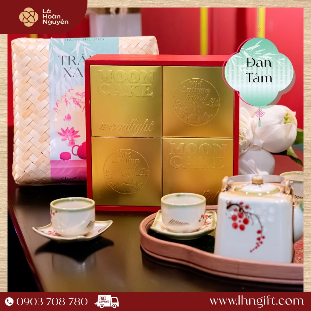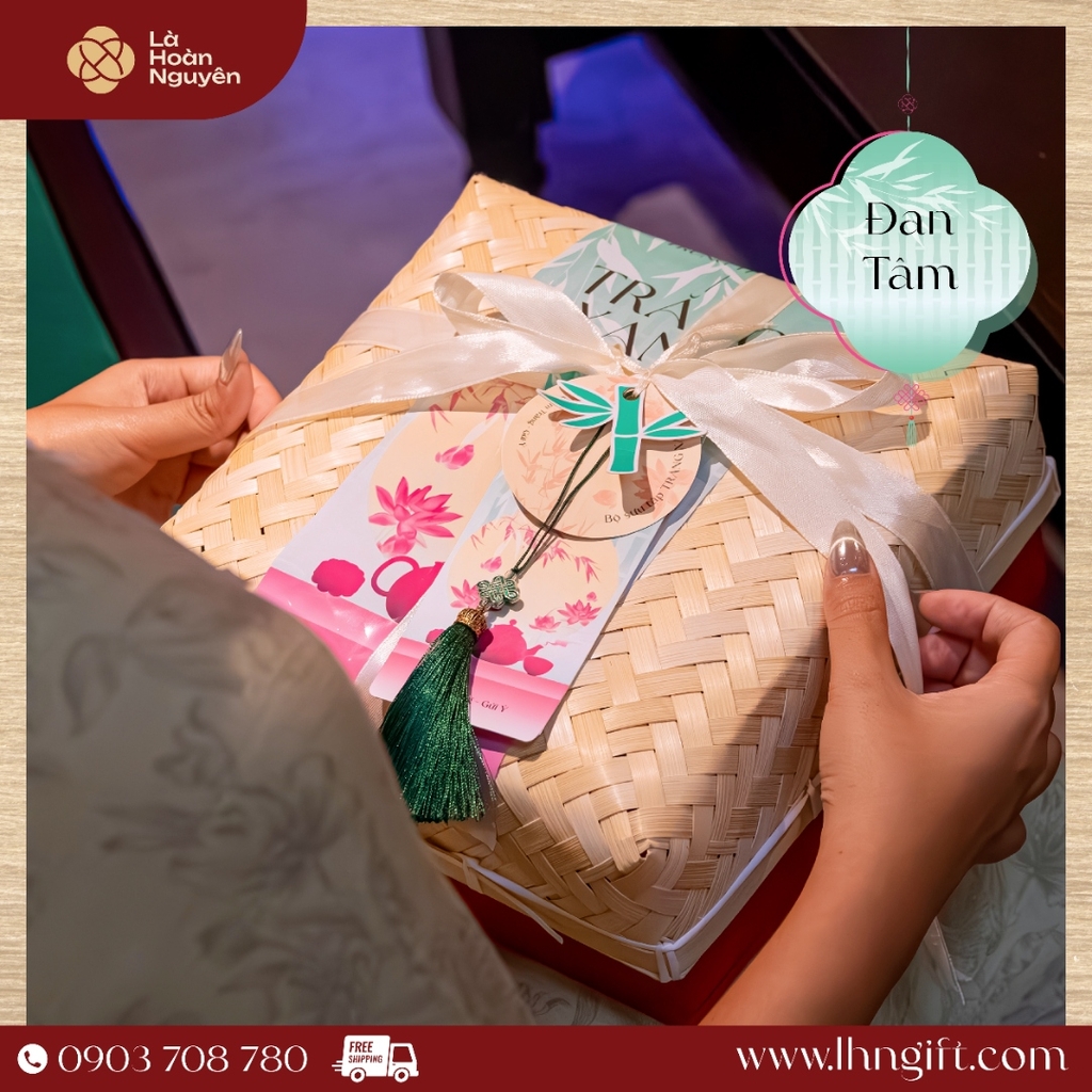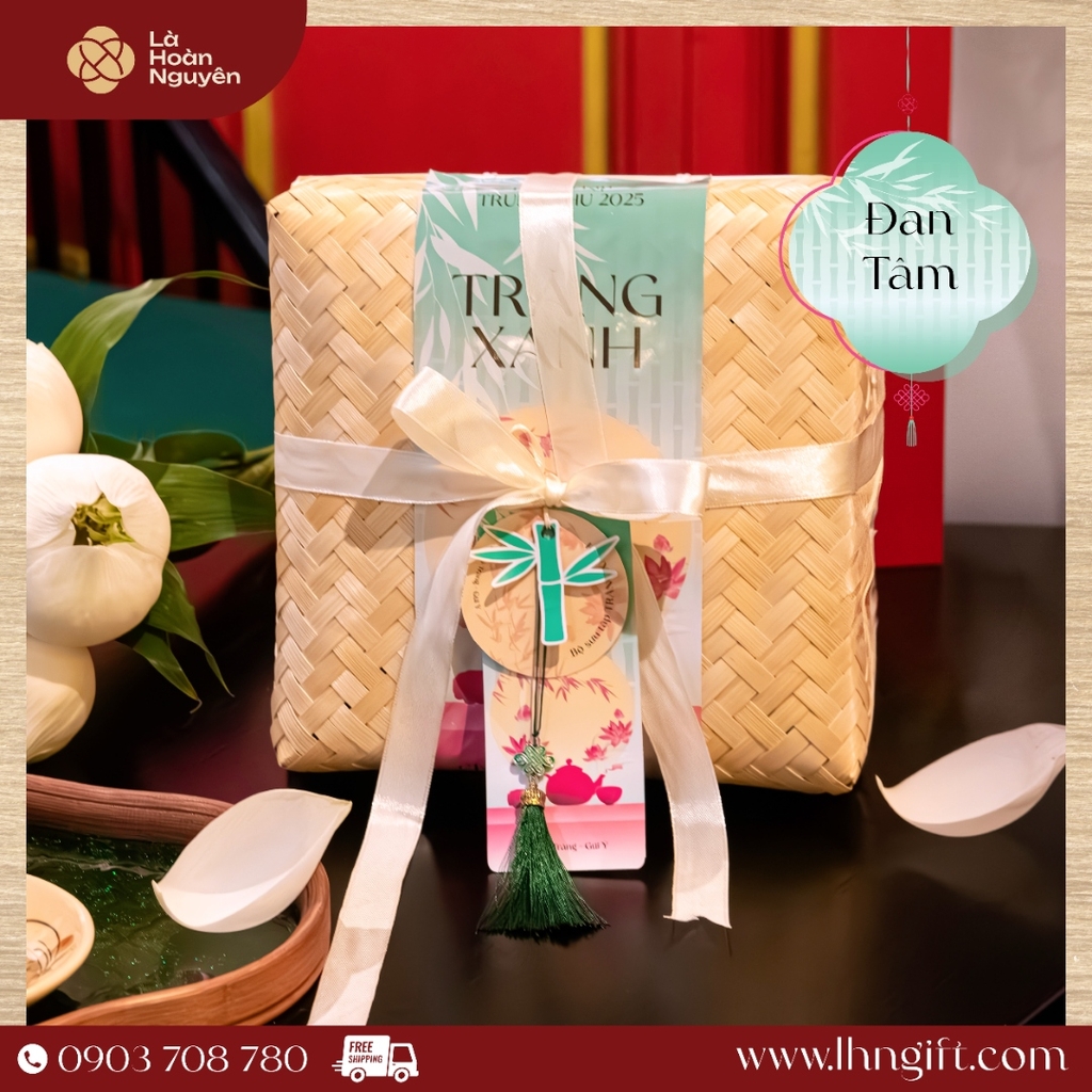 Đan Tâm là hộp quà dành cho những mối gắn kết sâu – nơi tấm lòng được lồng ghép khéo léo qua từng lớp tre, nơ, bánh, và ánh trăng.